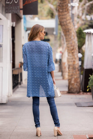 Inform when this item available: Sheer Dot Ruffle Sleeve Cardigan, Blue - XS/S